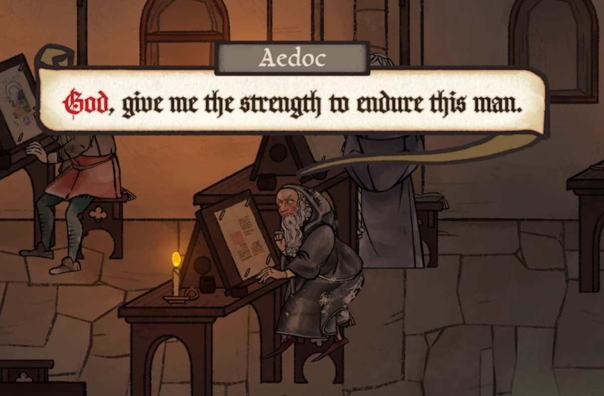 Pentiment is a mystery adventure game set in ye olde Europe. You play as a guy called Andreas Maler, an artist who gets caught up in a series of stabby stabby murders at Kiersau Abbey. My Andreas is a horn-bag, but that’s totally optional - you can play a less-crass version of Andreas pending you have the self-control to avoid the more vulgar options when setting up your background story (something I failed to do).